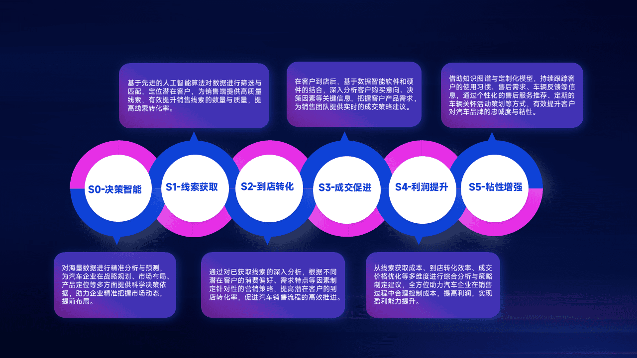 通过拓宽潜在客户来源、、、、优化线索分配并提高到店转化率,,以增强销售效率。。。。同时,,利用线索数据不断优化分析模型,,有效提升转化率,,,扩大营销影响力。。。。
